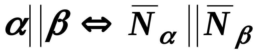 Умовою паралельності двох площин є колінеарність їх нормалей :