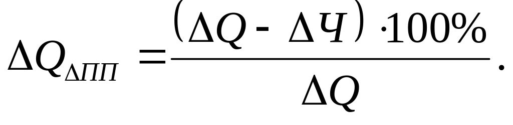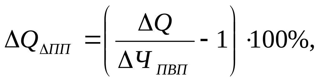Приріст продуктивності праці можна визначити також, якщо відомий приріст обсягів виробництва та чисельності ПВП, за наступною формулою: