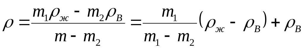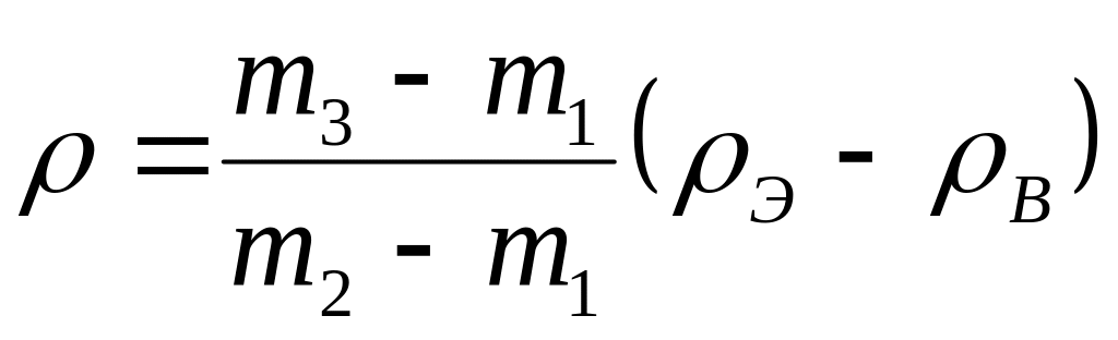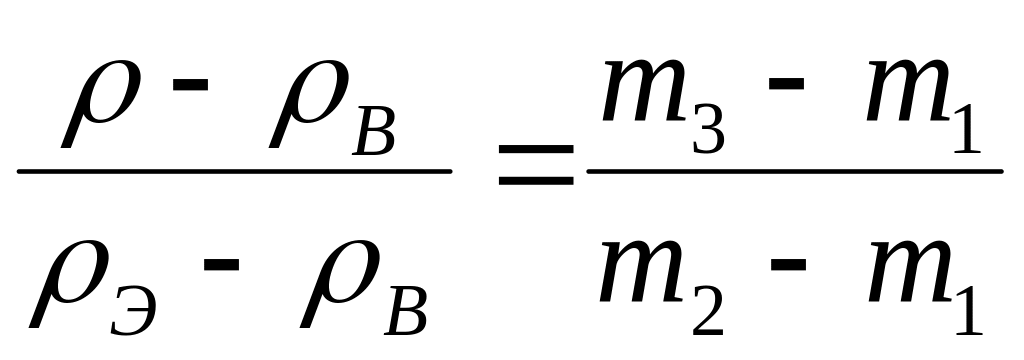 Так как при последовательном наполнении пикнометра объемы исследуемой и эталонной жидкостей одинаковы, а массу жидкостей можно установить с большей точностью на весах, то искомую плотность легко найти с помощью трех последовательных взвешиваний.