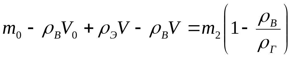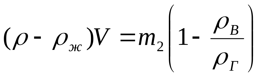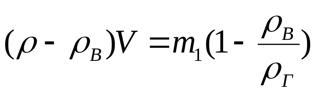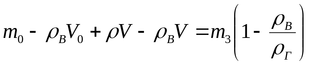 1. Уравновесим пустой пикнометр гирями массой . Условие равновесия с учетом выталкивающих сил: