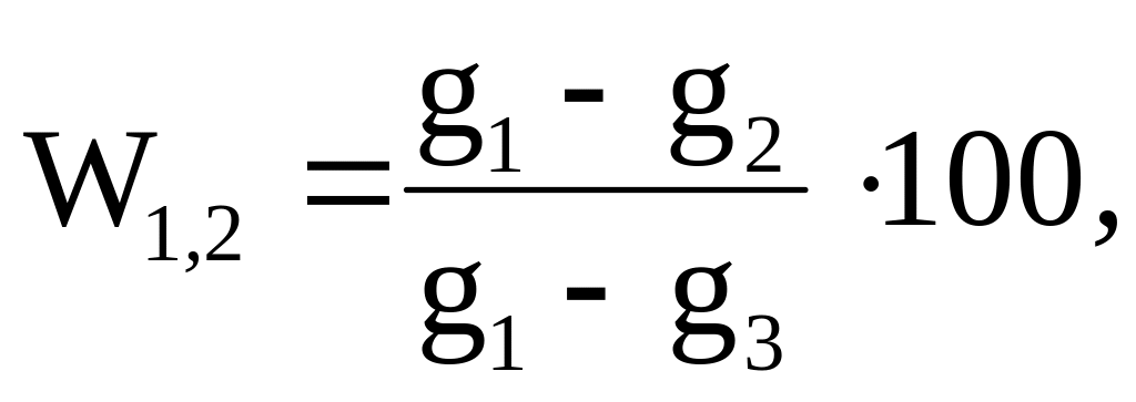 Масову частку вологи W1,2, %, розраховують за формулою: