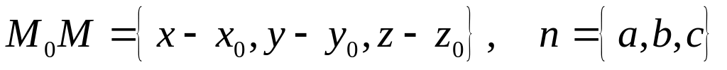 Це і є рівняння площини, яка проходить через задану точку перпендикулярно до вектора .
