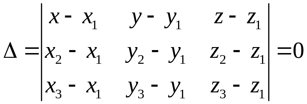Це і є рівняння площини, яка проходить через три задані точки. Обчисливши визначник, дістанемо це рівняння у загальному вигляді.