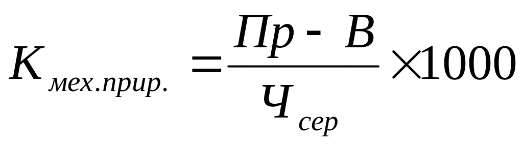 Коефіцієнт вибуття визначається як відношення кількості вибулих з даної території за рік (В) до середньорічної чисельності населення даної території ( ) в розрахунку на 1000 осіб населення: