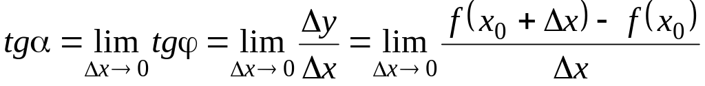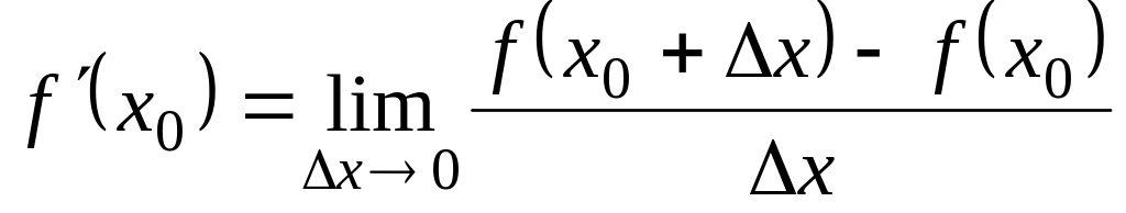 Производной функции в точке называют предел (1), если он существует и равен числу. Обозначение производной: