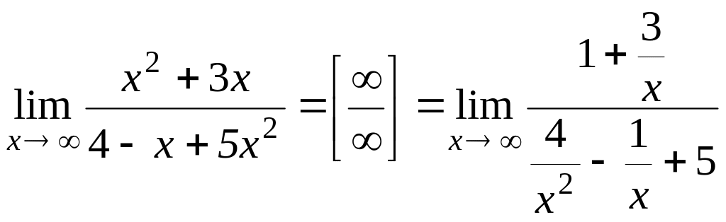 Если в числителе и знаменателе находятся многочлены и возникает неопределенность , то следует разделить числитель и знаменатель на х с наибольшим показателем степени числителя и знаменателя.