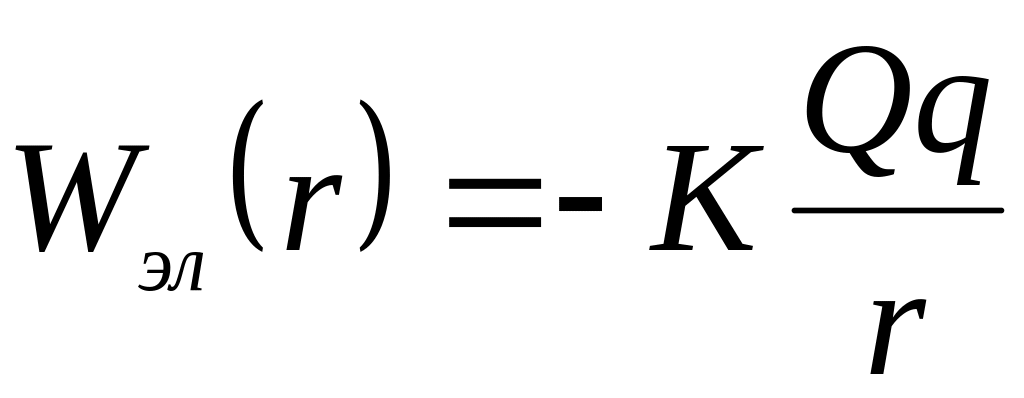Рассчитаем потенциальную энергию Wэл(r) двух одноименных зарядов q и Q, находящихся на расстоянии r друг от друга (рис 2.3). Заряды отталкиваются с силой