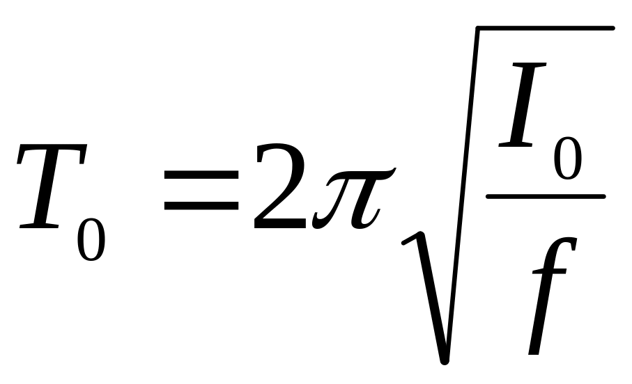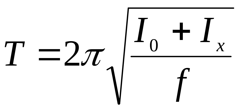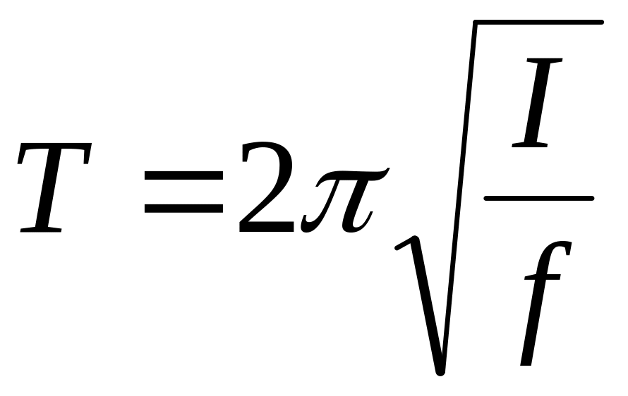 (Напомним, что период колебаний – время одного полного колебания, т.е. движения тела «туда и обратно»). При крутильных колебаниях роль массы играет момент инерции I, а роль жесткости – коэффициент кручения f, зависящий от упругих свойств подвеса. Тогда период крутильных колебаний