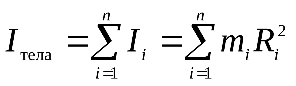 Если любое тело сложной формы разбить на n элементов (материальных точек), то момент инерции всего тела можно вычислить как сумму моментов инерции его элементов