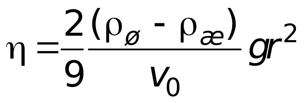 Измеряя скорость установившегося движения v0 и зная плотности шарика и жидкости и радиус шарика, определяем численное значение коэффициента вязкости жидкости.