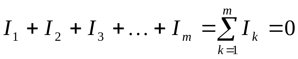 В любом узле электрической цепи алгебраическая сумма токов равна нулю: