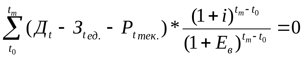 Внутренняя норма доходности является решением уравнения, которое имеет вид: