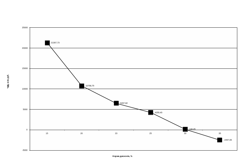 Согласно «Методическим указаниям по оценке эффективности инвестиционных проектов», если чистый дисконтированный доход инвестиционного проекта положителен, проект является эффективным (при данной норме дисконта) и может рассматриваться вопрос о его принятии. Если инвестиционный проекта будет осуществлен при отрицательном ЧДД, инвестор понесет убытки, т.е. проект неэффективен.