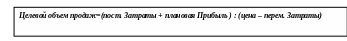 Меняя значения исходных данных , можно рассчитать величину потребной прибыли. Объем продаж в единицах, который обеспечивал бы получение запланированной прибыли рассчитывается по стандартной формуле