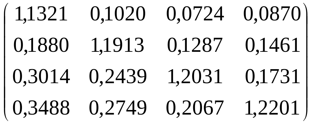 По матрице А технологических коэффициентов вычислим матрицу В коэффициентов полных затрат. Для этого вначале составим матрицу