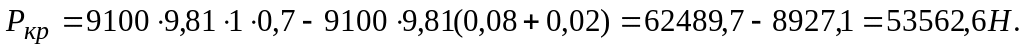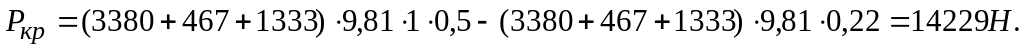 - коэффициент, показывающий долю веса трактора, воспринимаемую ведущими колесами, =1;