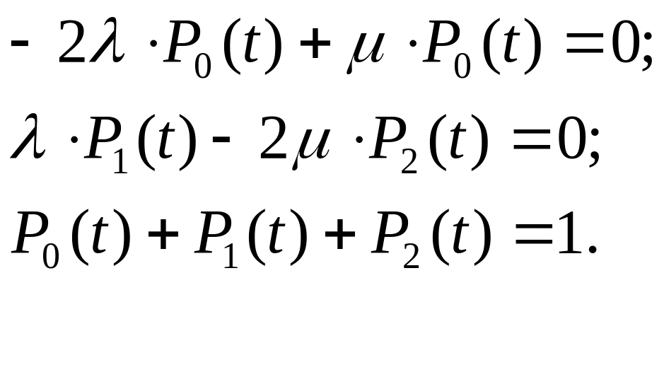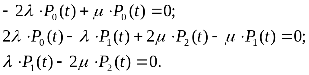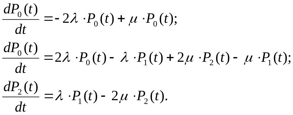 Вероятность нахождения системы в i – ом состоянии , то есть Pi(t), i = 0, 1, 2, определяется следующим образом:
