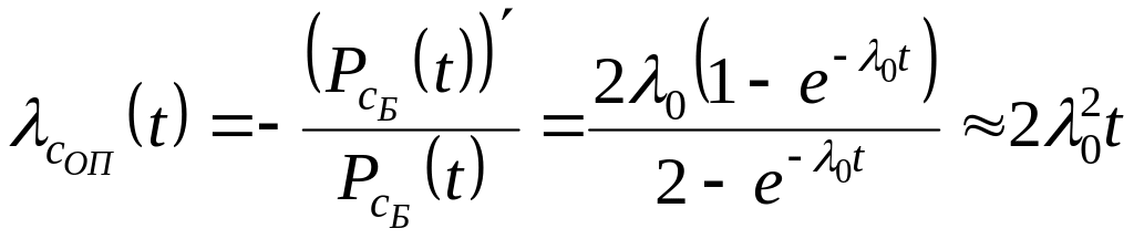 Из формулы (5.10) следует, что интенсивность опасных отказов двухканальной системы является функцией времени, несмотря на то, что интенсивность отказов одного канала является постоянной величиной.