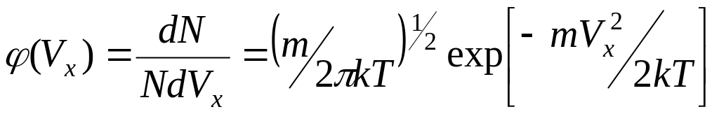 Распределение по скоростям молекул идеального газа, находящегося в состоянии термодинамического равновесия впервые было найдено Джеймсом Максвеллом. Для одномерного случая распределение молекул идеального газа по одной из компонент скорости Vx описывается нормальным распределением