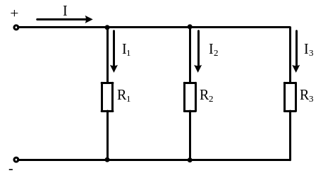 U = U1 + U2 + U3, або IR=IR1+IR2+IR3 .