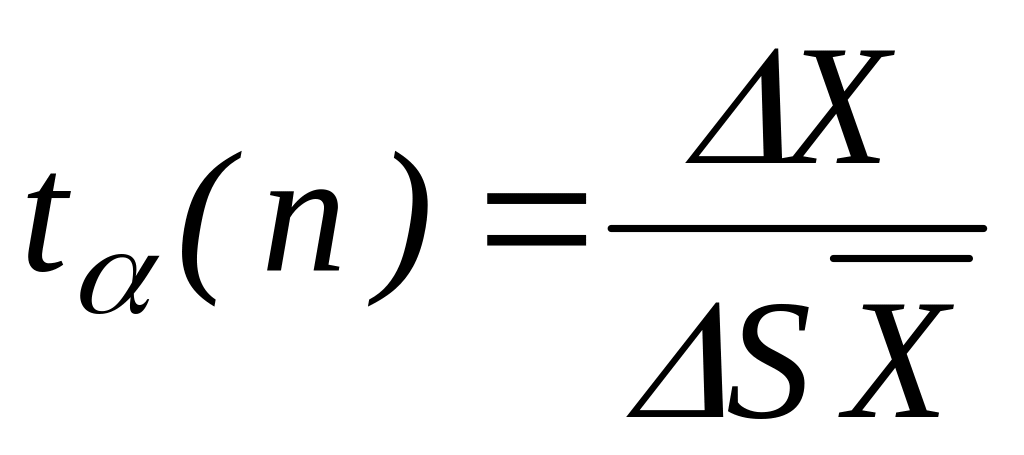 При малій серії вимірювань для розрахунку ∆Х при заданій надійності використовують коефіцієнт Стьюдента t, що залежить від кількості вимірювань n і величини :