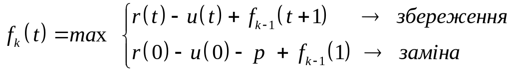 Задача полягає в тому, щоб для заданого планового періоду визначити оптимальну (за сумарним прибутком) стратегію поведінки (заміна чи збереження) щодо цього устаткування.