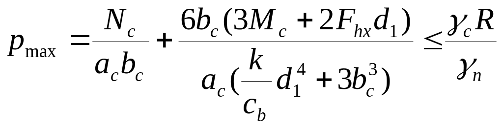Проверка несущей способности основания условного фундамента заключается в том, чтобы среднее p и максимальное pмах давления на грунт в сечении А-Б (рис 5.4) по подошве условного фундамента удовлетворяли следующим условиям