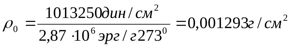 Величина густини сухого повітря ρ з рівняння стану рівна