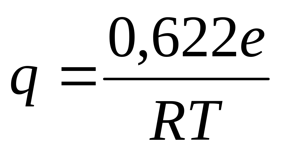 Густина вологого повітря можна прийняти як суму густин водяного пару q і сухого повітря ρ,