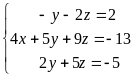 4х + у +2 z -8 = 0, 3х -5 y + 15 = 0, у - 3 = 0, 2y - 5z = 0.
