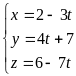 6х + 4у -3 z -12 = 0, 3x + y - 6 = 0, 2x + 7 = 0, x + 2y + 4 = 0.