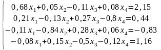х1 = х2 = х3 = х4 = 0 болған жағдайда теңдеу жүйесінің шешімі бос мүшелеріне тең болады.