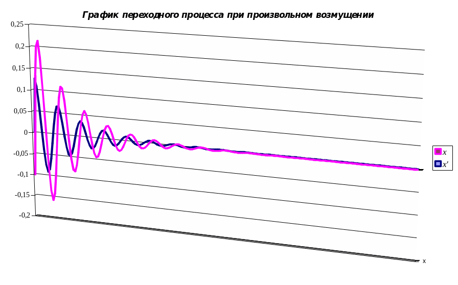 Постройте графики реакции на произвольное возмущение в предоставленной программе для качественного анализа и в Microsoft Excel для количественной оценки его характеристик.