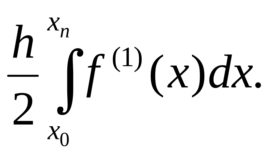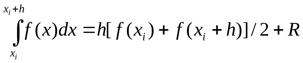 Метод трапеций получается при замене подынтегральной функции полиномом первой степени P1(x), для чего приходится использовать обе границы частичного интервала. На каждом элементарном отрезке аргумента х участок кривой интегрирования представляет собой отрезок прямой – две ординаты и отрезок оси абсцисс вместе с этой прямой ограничивают фигуру трапецеидальной формы, что и дает название этому методу кусочно-линейной аппроксимации подынтегральной функции. Приближенное значение интеграла определяется площадью трапеции: