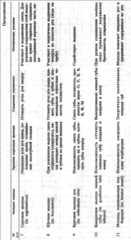 Методические указания: массаж кожи лица- очень ответственная процедура и проведение её требует специальных знаний и соответствующего опыта. Как известно, кожа на лице отличается большой податливостью и растяжимостью. Неправильный выбор и применение массажных приёмов могут привести к образованию или усилению морщин, отвисанию кожных складок и другим нарушениям на лице. Особенно осторожно следует подходить к массированию кожи лица у лиц пожилого возраста, у которых наблюдается истончение и снижение эластичности кожи вследствие развивающейся атрофии её отдельных слоёв и бедности подкожножировой клетчатки. Большой осторожности также требует применение смазывающих веществ, выбор которых в первую очередь зависит от функционального состояния сальных желёз (сухая или жирная кожа). Из этого следует, что массаж лица, особенно самомассаж, даже при условии здоровой кожи желательно производить только после консультаций со специалистом-косметологом, а при наличии заболевания кожи лица- по указанию дерматолога. При массаже лица шея больного должна быть обнажена, так как массаж лица включает и массаж шеи. Массажу кожи лица должна предшествовать тщательная её очистка от скопившихся на поверхности выделений сальных и потовых желёз и от пудры, для этого слегка протирают кожу ватным тампоном, смоченным спиртоводным раствором, лосьоном утро. Холодное лицо необходимо согреть при помощи горячего влажного компресса, для чего применяется чистое мохнатое полотенце или салфетка. Ещё лучше сделать паровую ванну для лица (температура ванны 45-50 градусов, продолжительность паровой ванны 5-8 минут). Влажное тепло хорошо размягчает и очищает кожу от сальных и потовых выделений. Массажные движения должны быть очень нежными, производить их следует без большого нажима и сдвигания кожи. Первые процедуры массажа лица не должны быть длительными, а массажные движения энергичными, чтобы не вызвать раздражения кожи лица. Чем нежнее ткани и чем больше нарушена эластичность кожи лица, тем мягче должны быть массажные движения. Сила, скорость и амплитуда массажных движений для обеих рук должны быть по возможности одинаковыми. Из массажных приёмов наибольшей осторожности требует разминание кожи лица. Применение этого приёма не должно вызывать растягивания кожи, а также повреждения её эластичных волокон. При нормальной коже у лиц молодого возраста массаж кожи лица достаточно проводить 2 раза в месяц, а при вялой, дряблой Коже- не чаще одного раза в неделю. При заболеваниях лица массаж в зависимости от показаний может проводиться через 1 или 2 дня. Длительность первой массажной процедуры 5-7 минут, постепенно время массажа увеличивают и доводят до двенадцати минут. Эффективность массажа лица может быть значительно повышена при сочетании его с гимнастикой мимических мышц. Гимнастику следует проводить перед зеркалом, чтобы пациент мог контролировать правильность мышечных сокращений отдельных мимических мышц. Следует указать, что одностороннее сокращение лицевых мышц удаётся получить лишь для очень ограниченной группы мышц, а именно: круговой мышцы глаза (m. Orbicularis oculi), скуловой мышцы (M. Zygomaticus), мышцы смеха (M. Triangularis), что касается остальных мышц, то их действие значительно легче вызывается при одновременном двустороннем сокращении (Таблица 3).