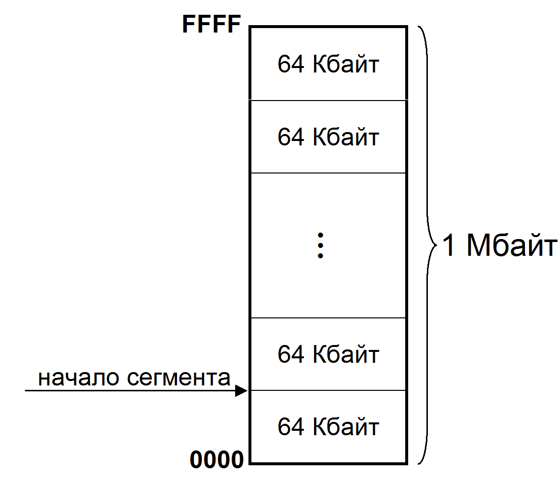 Все процессоры эмулируют режим процессора 8086, исходя из этого, а также для упрощения мы будем рассматривать методы представления адреса 20 битами. Первый байт в этом случае имеет адрес 0, последний имеет адрес 1048575 или FFFF в шестнадцатеричной системе счисления.