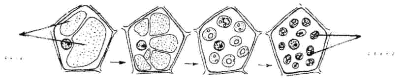 Рис. 2. Перетворення лейкопласта в крохмальне зерно (амілопласт)