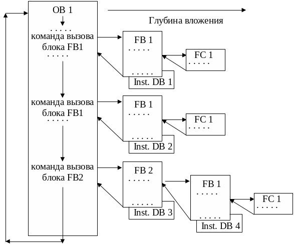 Если задача автоматизации сложная, она разделяется на более мелкие задачи, которые могут быть использованы неоднократно. Алгоритмы решения этих задач программируются в логических блоках. Порядок и вложение вызовов блоков называется иерархией вызовов.