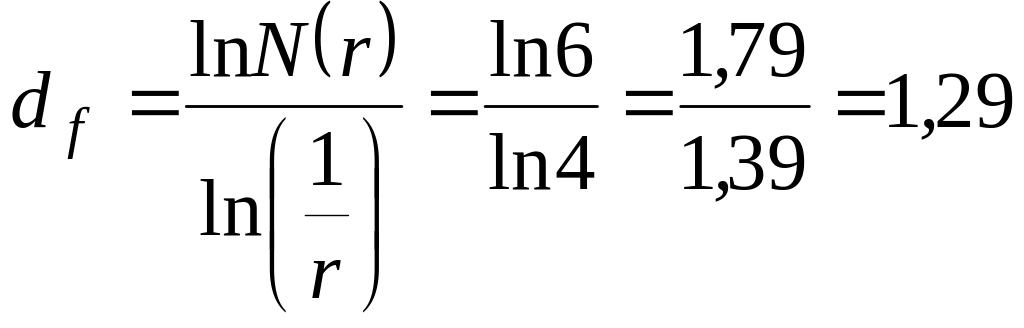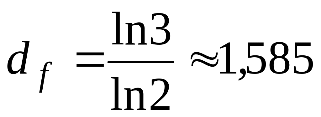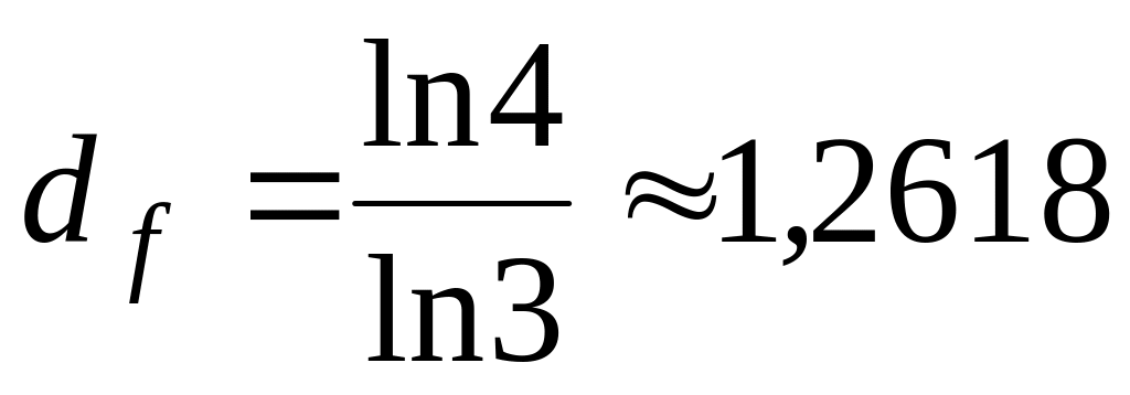 Так как N = 2, а коэффициент подобия , то размерность фрактала равна:
