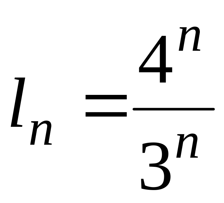 Действительно, на первом шаге удаляется 1/4 площади треугольника, на втором шаге 3 треугольника площадью l/42 от исходного и т.д.