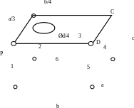 Имеется однородная плита весом G=1 кН с размерами а = 1 м, b = 2 м, c = 2 м, d = 1 м (рис.3.1). Плита закреплена горизонтально посредством шести прямолинейных стержней с шарнирами на концах и имеет отверстие. На плиту действует сила Р=2 кН вдоль стороны АВ и сила тяжести G, направленная вертикально вниз. Определить реакции стержней (усилия в стержнях), поддерживающих горизонтальную однородную плиту с отверстием. Данные взять из табл.3.