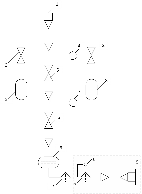 Рис. 1.1.1. Схема спеціальної установки для внутрішньої консервації двигуна: штуцер зарядки повітряних балонів; 2- крани повітряних балонів; 3- повітряні балони; 4- манометри; 5- роздавальний кран; 6- маслобак; 7- маслофільтр; 8- перепускний клапан; 9- штуцер консервації; 10- пристрій для консервації.