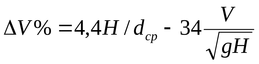 V - потеря скорости в %, по отношению скорости на глубокой воде.