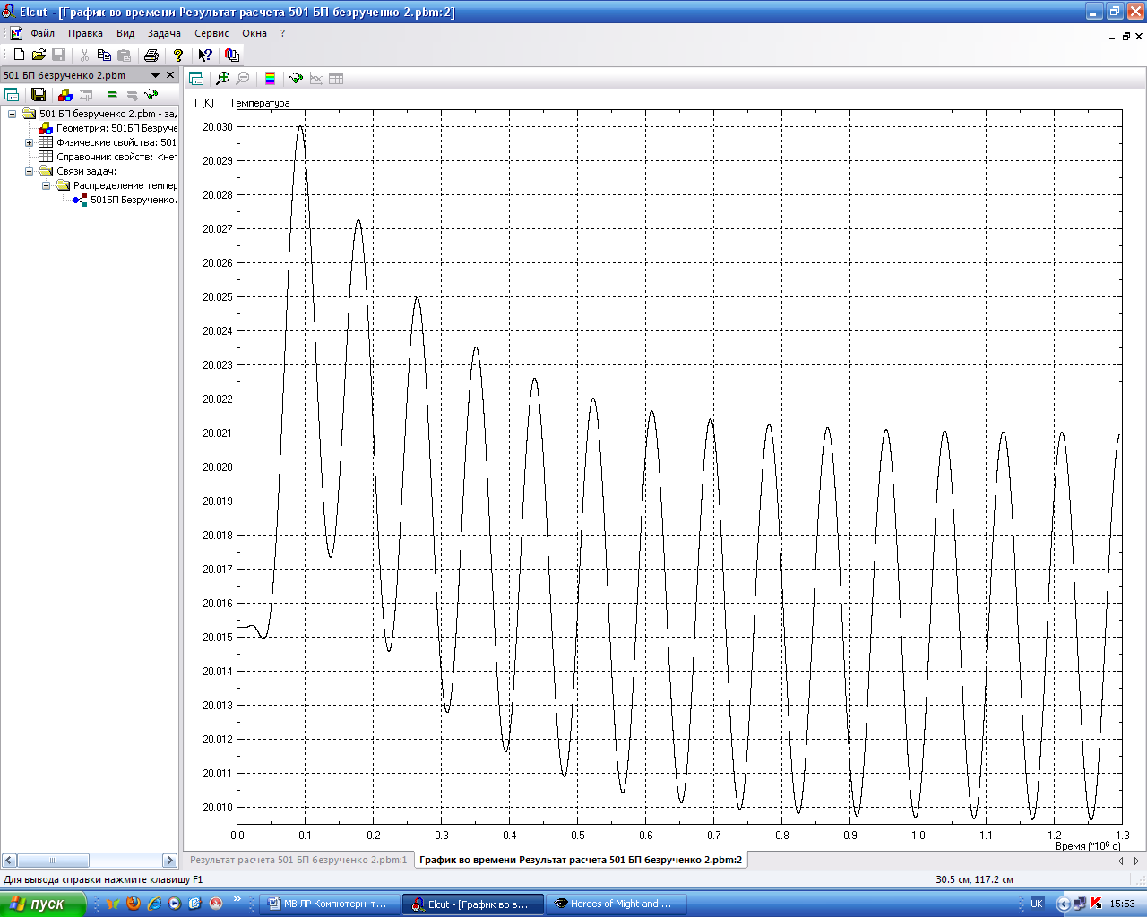 Рисунок 41. Графік коливань температури на внутрішній поверхні стіни в точці на осі симетрії