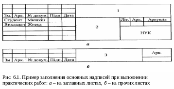 Первый лист цикла практических работ должен иметь основную надпись, пример которой приведен на рис. 6.1 а.