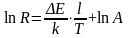 для любых двух точек, лежащих на прямой, а затем найти энергию активации ΔЕ.