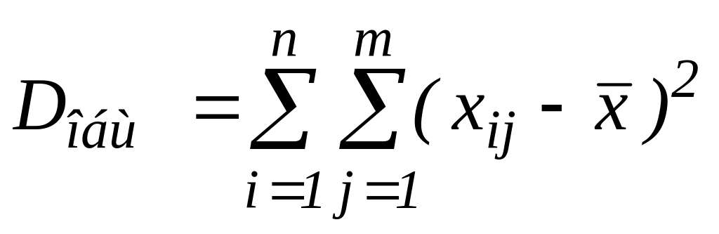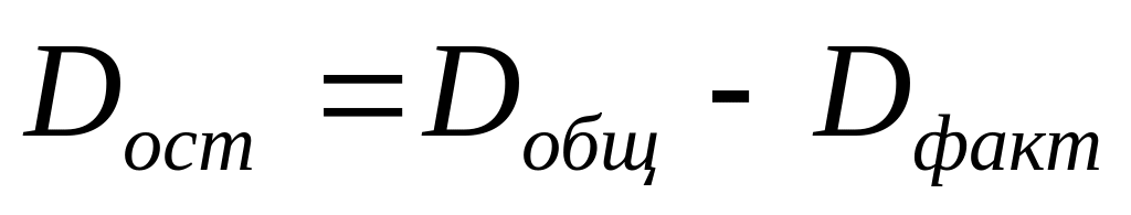 4. Определяется величина остаточной (внутригрупповой) дисперсии Dост как разность между общей Dобщ и факторной Dфакт дисперсиями: