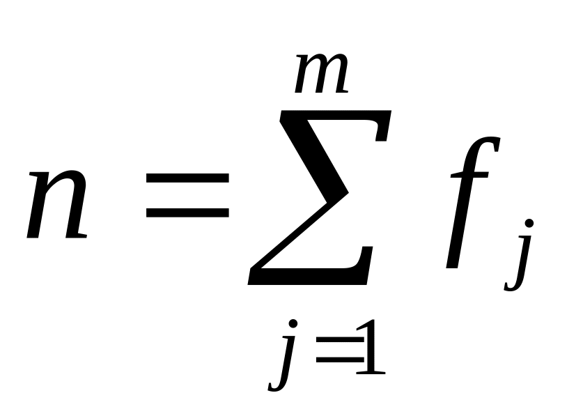 Общее количество наблюдений n рассчитывается как сумма числа наблюдений fj в каждой группе: