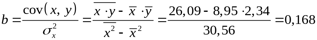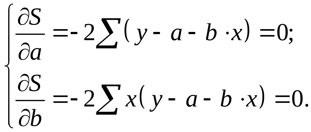 Решая систему уравнений (1.4), найдем искомые оценки параметров и . Можно воспользоваться следующими готовыми формулами, которые следуют непосредственно из решения системы (1.4):