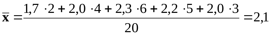 Dфакт = (1,7 – 2,1)2* 2 + (2,0 – 2,1)2* 4 + (2,3 – 2,1)2* 6 + (2,2 – 2,1)2* 5 + + (2,0 – 2,1)2* 3 = 0,7